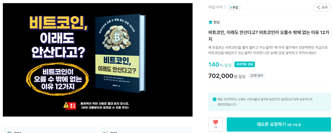 와디즈 펀딩이 2025.2.15. 종료되었고, 최종 140% 달성하여 펀딩성공하였습니다.