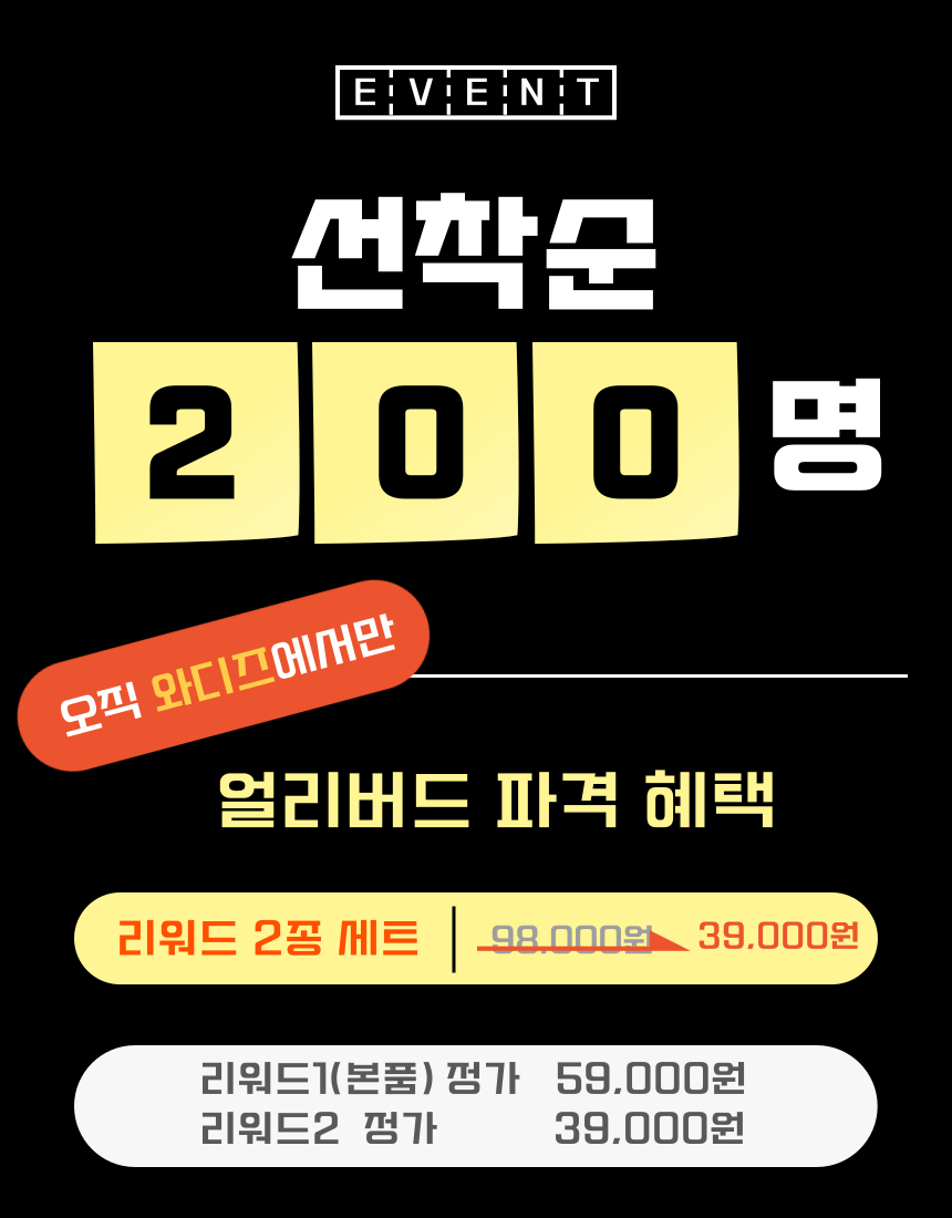 오직 와디즈에서 독점 펀딩하며, 얼리버드 선착순 200분에게만 대폭 할인 특가로 제공되니 서둘러 주세요.