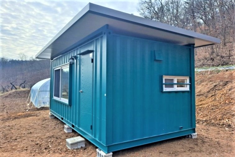 가장 기본적인 컨테이너의 경우 6m * 3m의 크기이고, 바닥에 전기판넬을 깔아서 난방을 하며, 정화조를 함께 설치한다면 컨테이너 내부에 수세직 화장실과 싱크대도 설치해서 기본적인 생활이 가능하도록 꾸미고 있습니다.