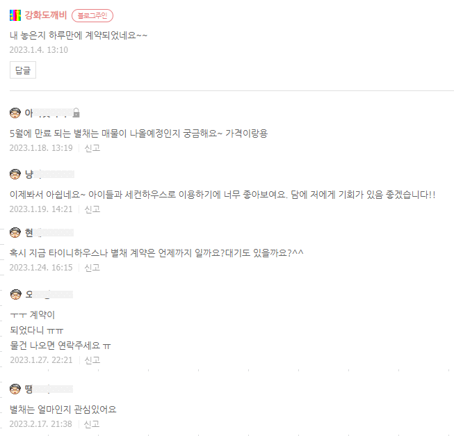 이후 여러분들이 '다른 매물은 언제 나오느냐', '다음 매물 대기 걸겠다' 등등의 관심표현이 계속되고 있습니다.