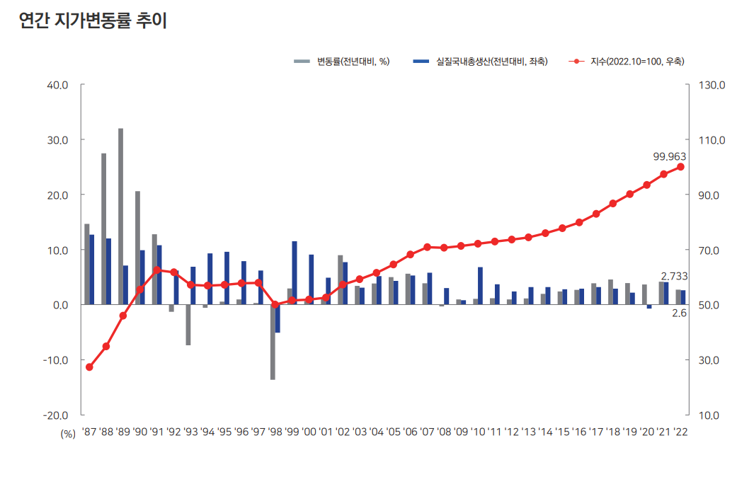 IMF 때 일시적으로 떨어진 것 말고는 꾸준히 우상향하며 지가가 상승해 온 것을 보실 수 있을겁니다.