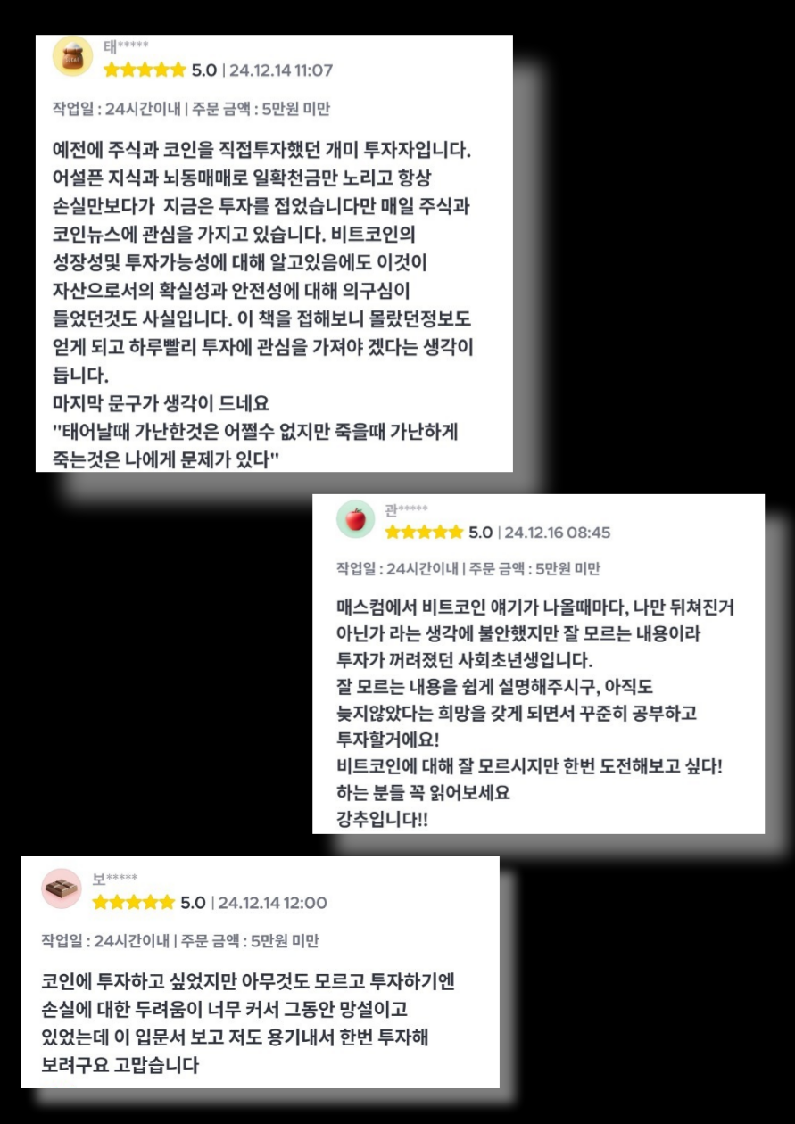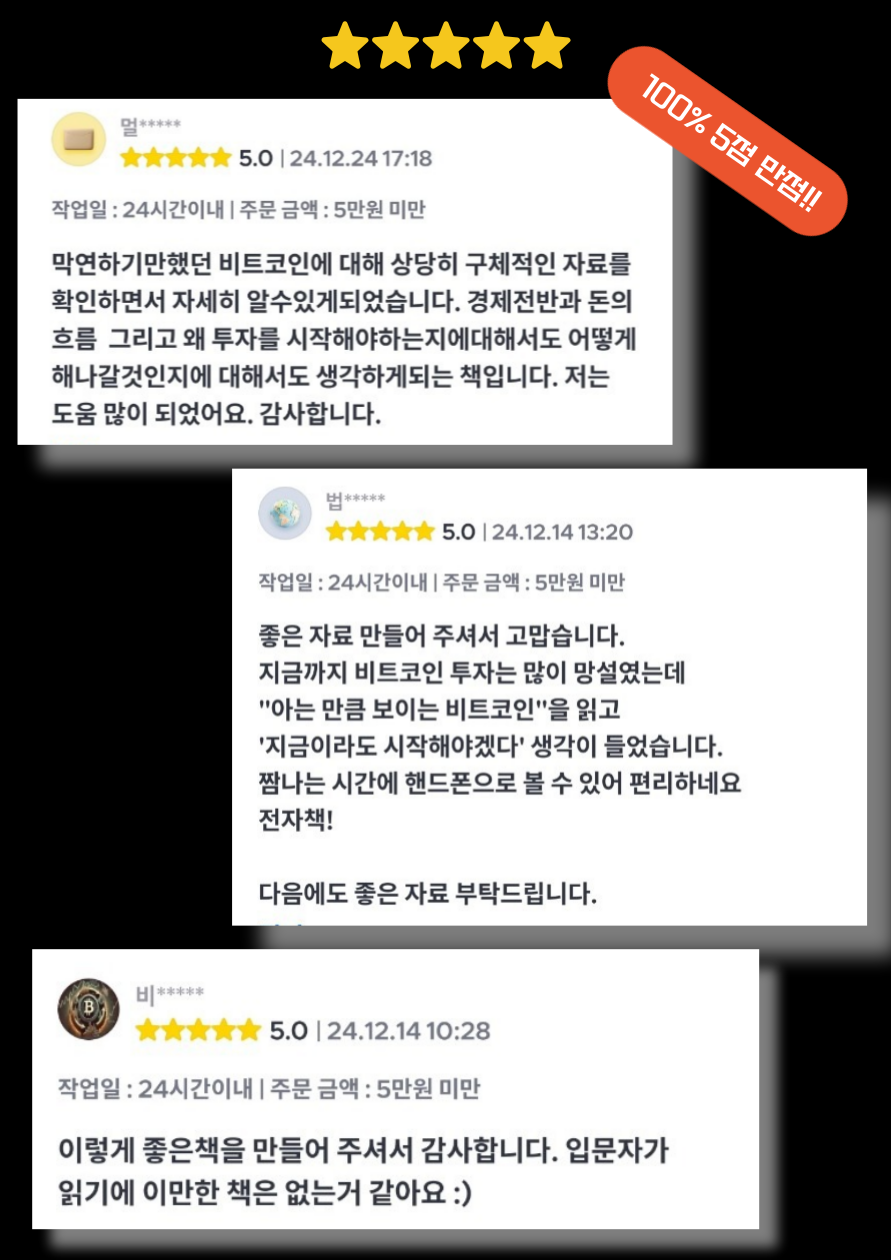 제가 써음 썼던 '아는 만큼 보이는 비트코인'이라는 책을 읽은 독자들의 실제 리뷰를 직접 확인해 보세요.
